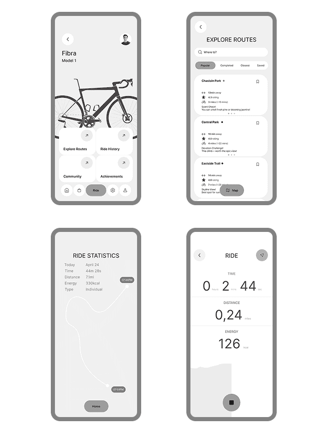 Fibra is a mobile companion app created for non-professional cyclists who want to integrate outdoor riding into their regular routines. This project explored how product guidance, expectation awareness, and structured ride planning can make outdoor cycling feel more approachable and repeatable over time.