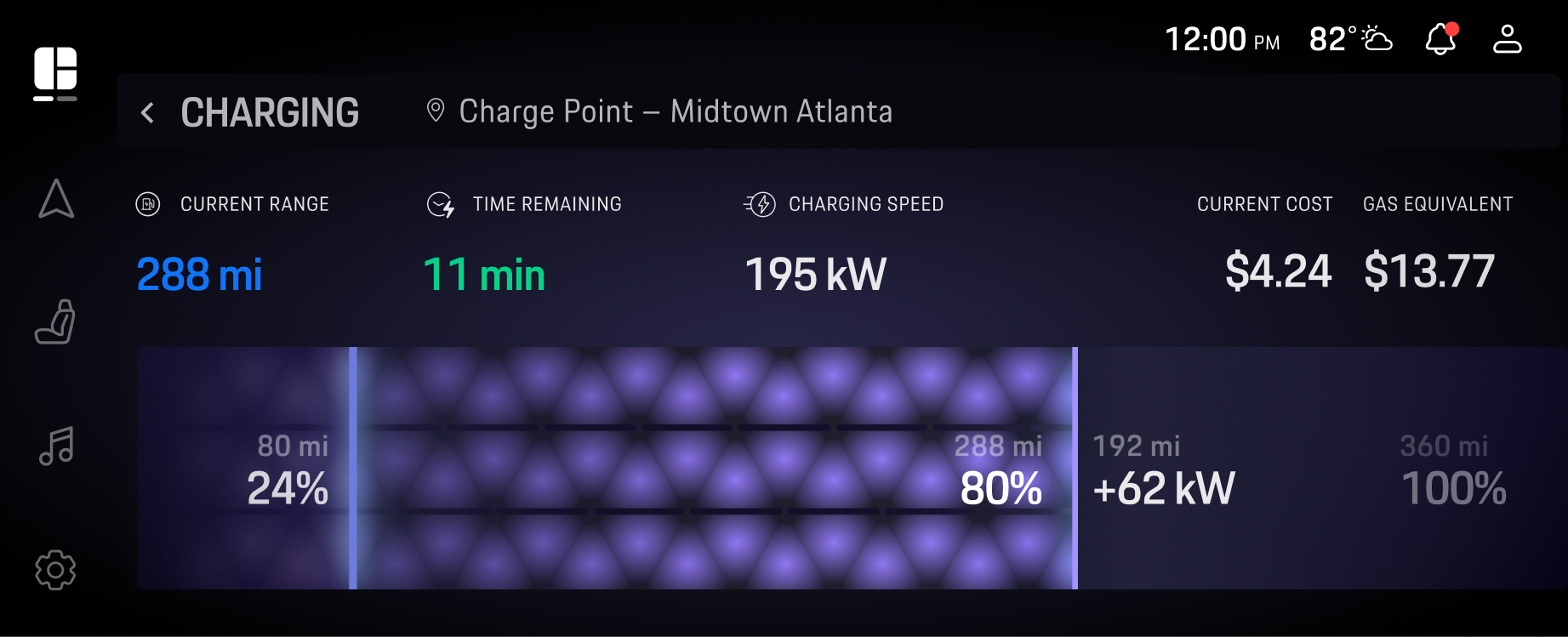 Sharp contrasts and high-visibility indicators highlight critical changes—alerts, braking, or power shifts—delivering clarity at speed.