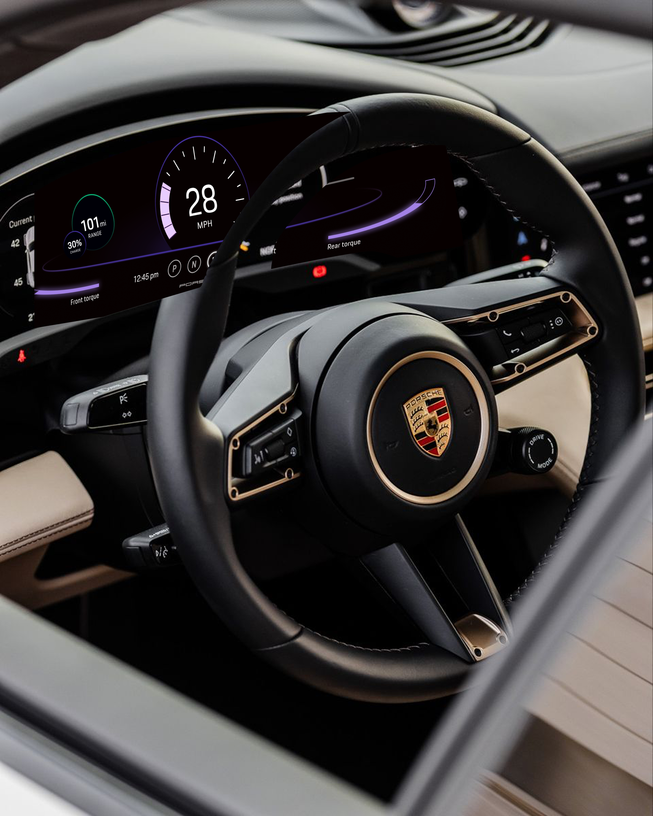 A redefined EV interior experience that harmonizes physical and digital controls, introduces transparency around range and performance, and creates unified sensory modes. The outcome is a Sports Mode interface that reduces anxiety, enhances control, and preserves Porsche’s timeless driving identity.