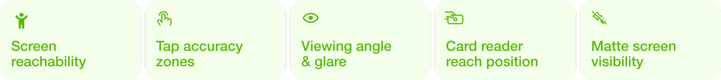 Ergonomics testing was conducted in a usability testing room on a real kiosk hardware with 14 in-person participants (participants height range: 4′11″–6′2). This phase focused primarily on physical interaction with the kiosk with the focus on five core pillars.