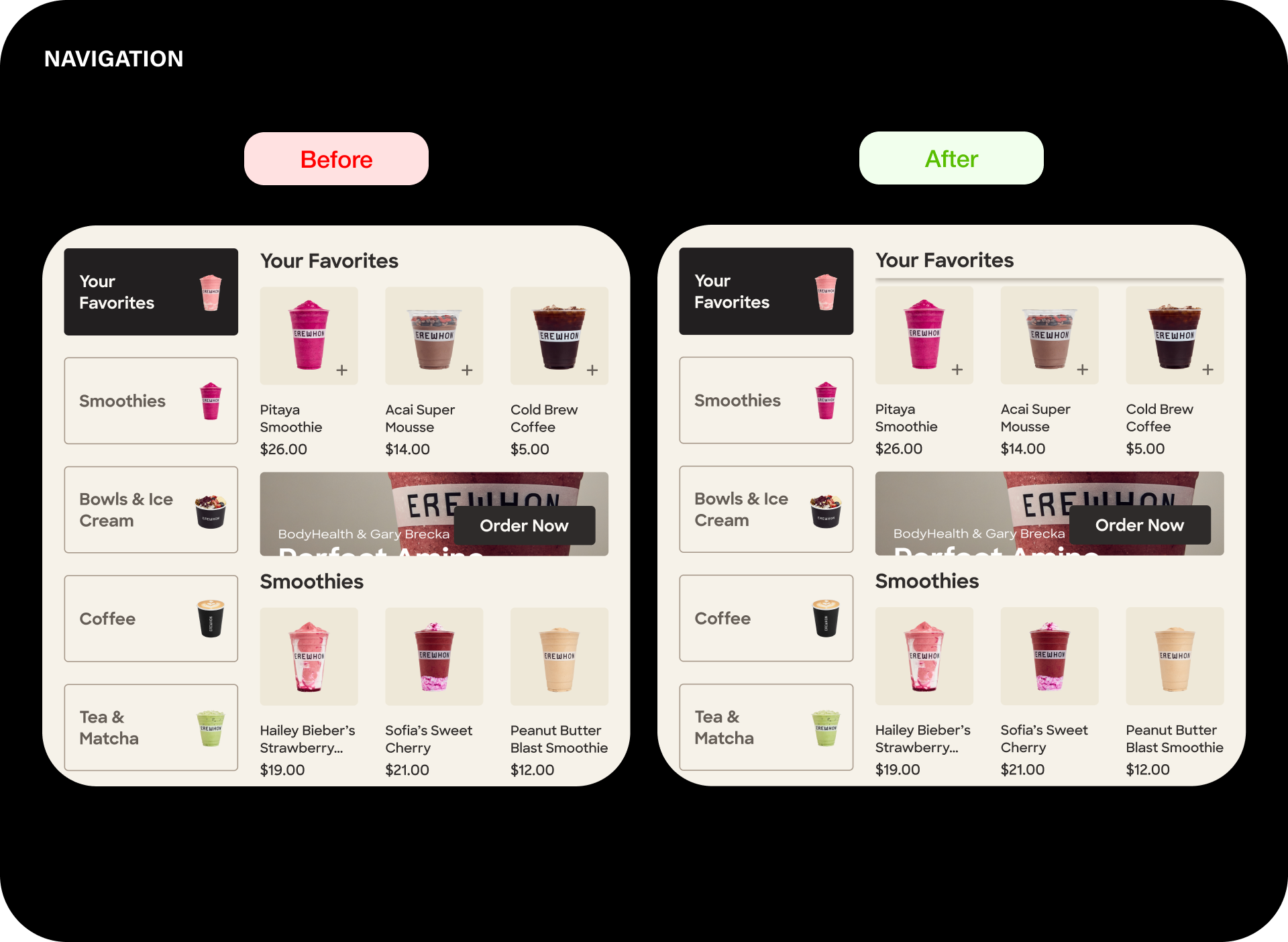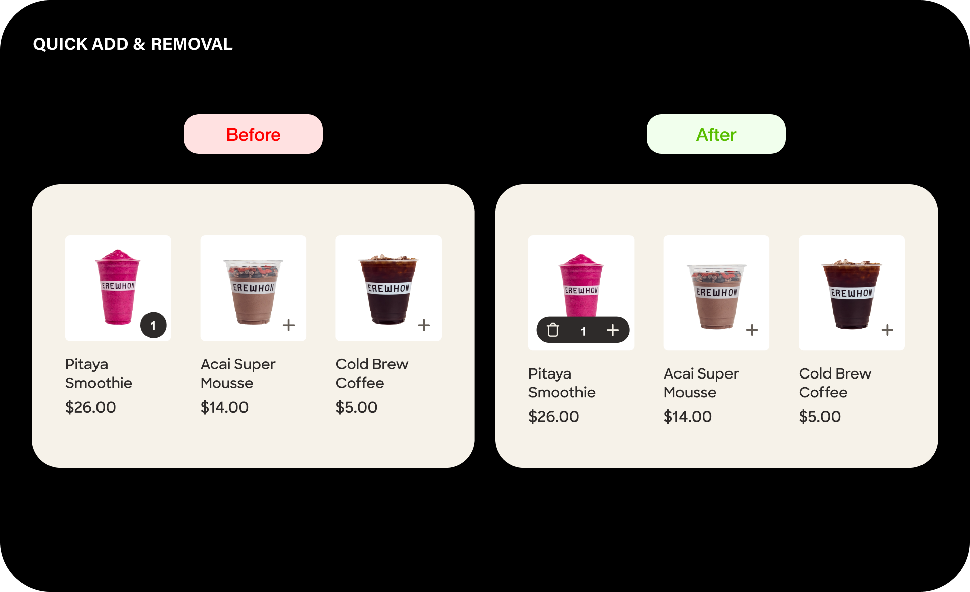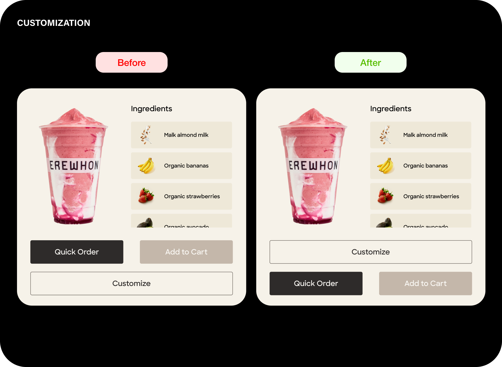 Erewhon products offer multiple modifiers to support the brand’s focus on personalized choice.