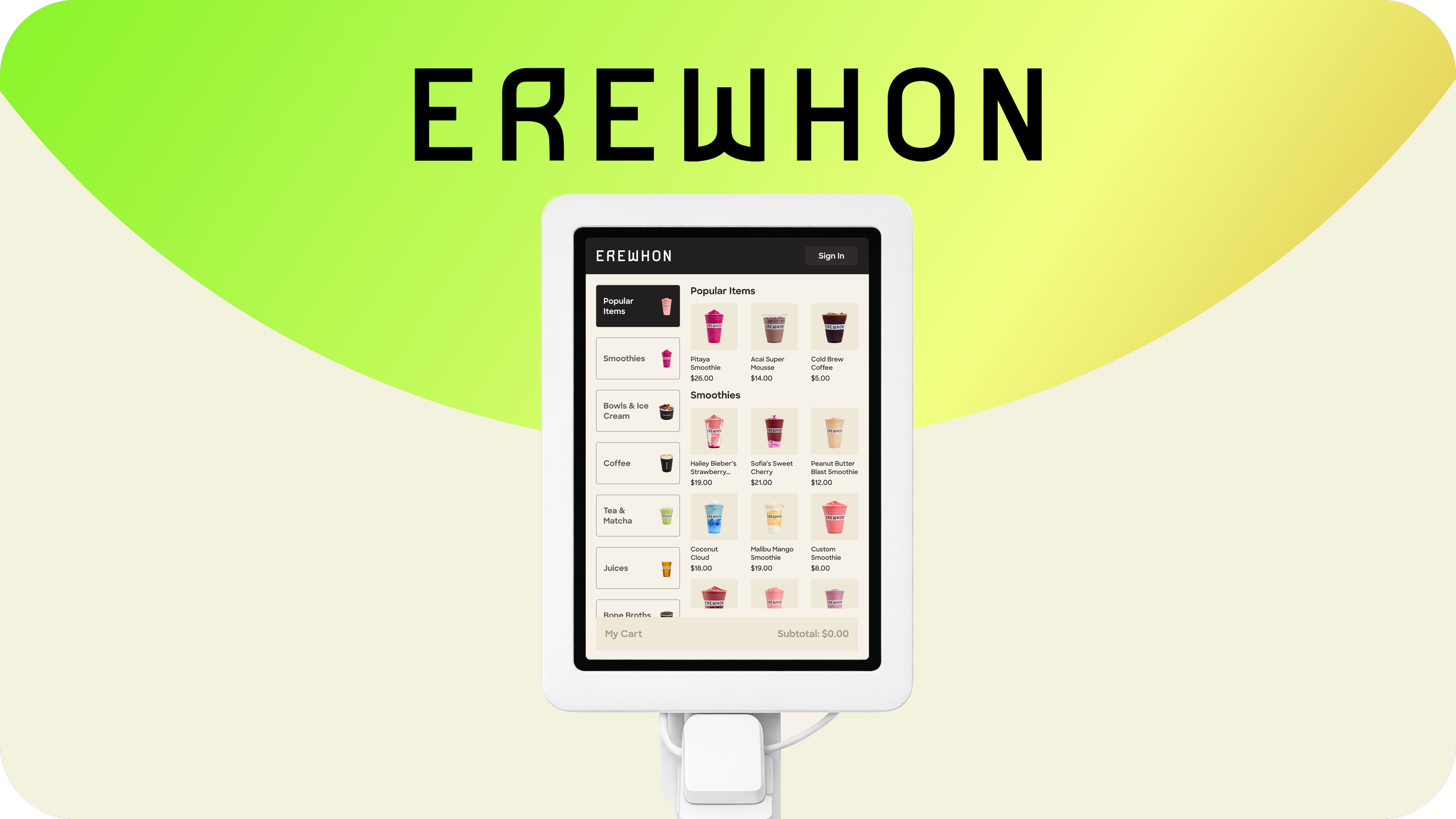 Erewhon, a premium grocery retailer, explored a self-order kiosk to support customer ordering and reduce wait times within its in-store experience. This project focused on evaluating how the kiosk should function within the in-store environment.