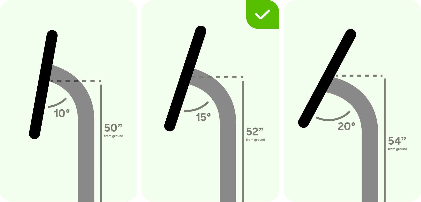 38% of participants preferred kiosk setup at 52″ height with a 15° screen angle